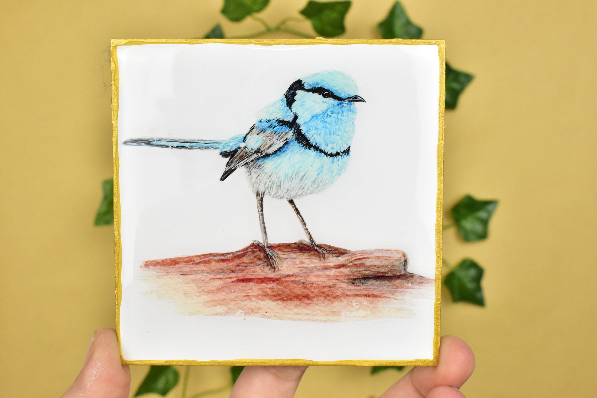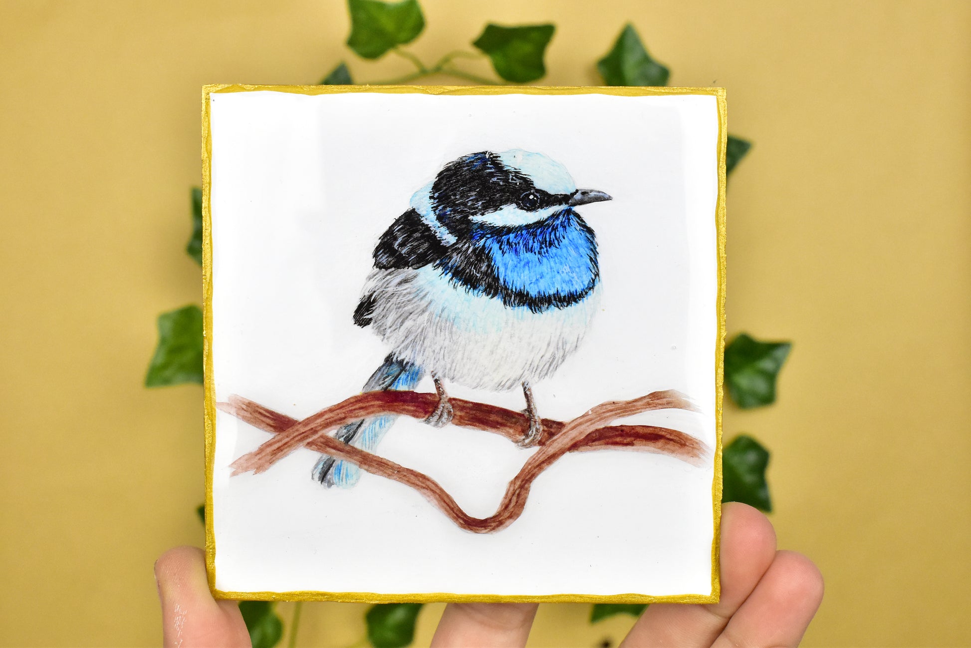 Elevate your home décor with these stunning coasters depicting the beloved Australian Blue Fairy Wren.